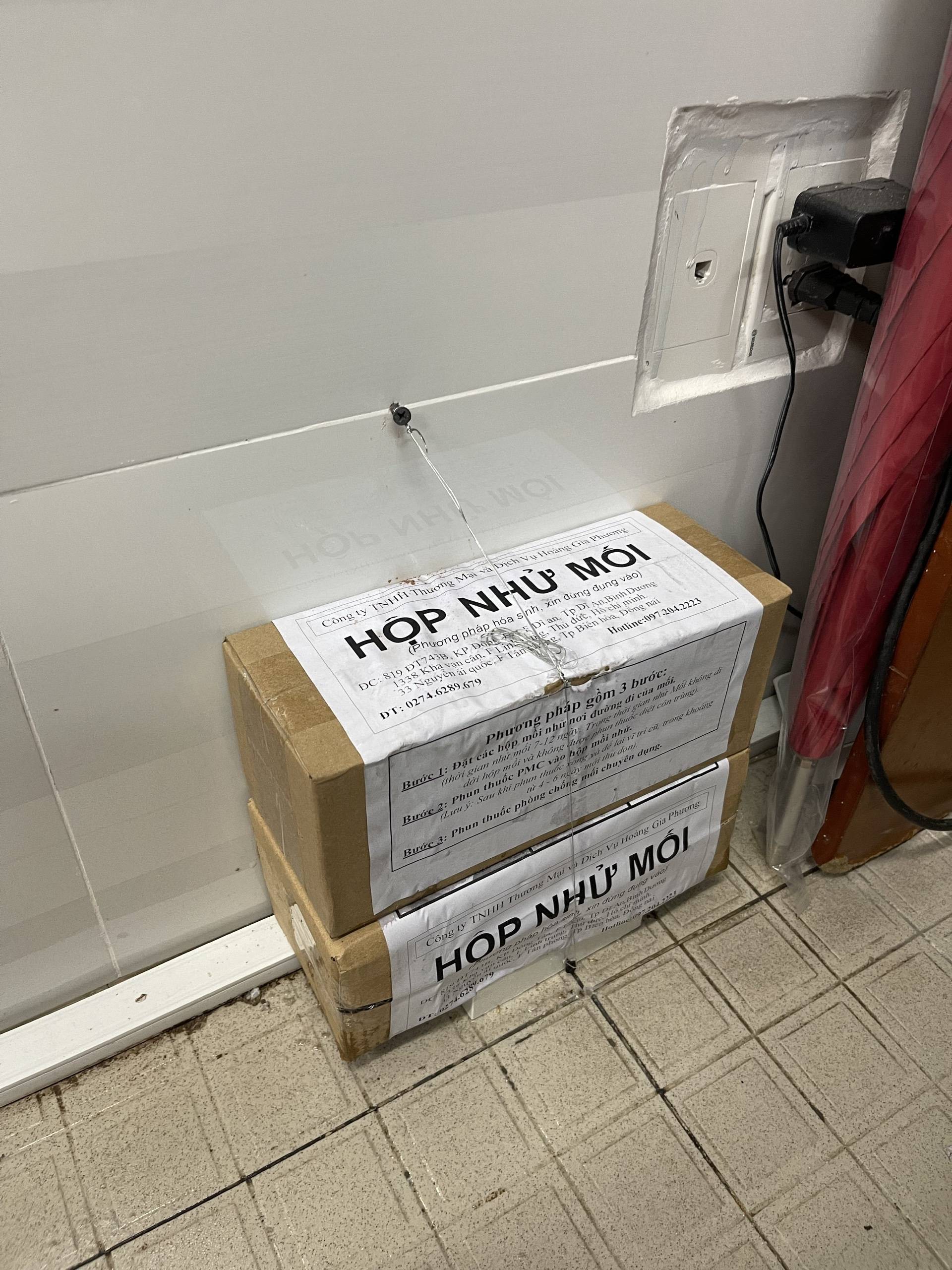 Bước 1: Đặt hộp nhử mối. Đặt hộp mồi nhử (gỗ thông) vào các vị trí có mối, nhử trong 8 -12 ngày.